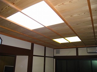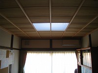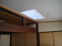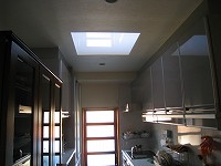天窓(KG邸) 2008年11月10日2014年12月18日 by 福川工務店 北側で暗くなりがちなので天窓を設けました。 奥に見える天窓には照明器具を仕込んでいます。(手前は照明のみ) 食堂 居間 台所 ガラス瓦