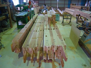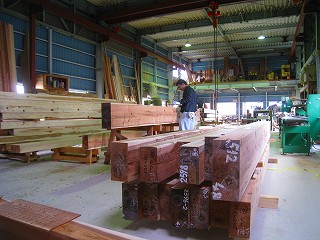 手刻み加工(田原の家) 2010年4月10日2014年12月18日 by 福川工務店 プレカットによる加工が全盛時代ですが、手刻みで加工します。梁や笹良や柱など構造を部分的に見せる設計ですので、場所に合わせて材を選びます。 作業場にて墨付けをし、刻み加工をしていきます。