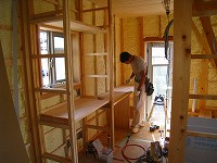 内部は造作工事が進み、外部は塗り壁仕上げに入っています。