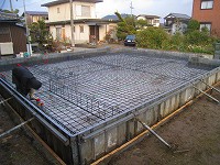基礎工事(甲崎の家) 2011年2月3日2014年12月18日 by 福川工務店 雪の影響で遅れていました基礎工事がはじまりました。 スラブの配筋は@150としています。また、外周立ち上がりは 180㎜巾でコンクリートを打ちます。