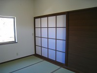 タモの無垢のフロアーを現場塗装しています。キッチンの壁はモザイクタイル貼です。大きな建具を開けると、増築した畳リビングとつながり今までよりもかなり広がりを感じられるます。