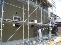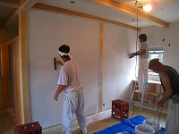 左官工事(甲崎の家) 2011年6月10日2014年12月18日 by 福川工務店 外壁や内部の壁の多くは左官屋さんによる塗り壁仕上げです。 手づくりの味がでるうえ、メンテナンス性もよいと考えています。