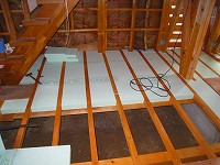 床はポリスチレンフォーム(XPS)3種b=60mm、壁は、グラスウール(GW)16Kt=100mmを用い、次世代省エネ基準での断熱施工をしています。