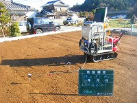 造成後に、地盤の調査をします。表面波探査で行い地耐力50KNt/㎡が確認され、地盤改良はなしのベタ基礎にての施工となりました。