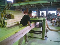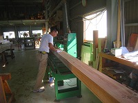 木つくり(本町の家) 2012年9月15日2014年12月18日 by 福川工務店 納材されたびわ湖材を機械に通し、かね(直角)と寸法をきめていきます。 多賀の杉 鳥居本の管柱 直角2面カンナ プレーナー