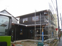 今回は、全面黒の焼板を貼ります。表や裏の大きな軒裏を白木のままにしているのがよいバランスになってるようです。