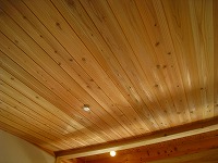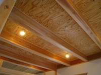 居間の天井(県産の杉合板) 和室の天井(杉羽目板)