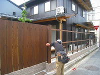 この家に面する道路は、人通りも多いので、少々高めの板塀にしました。これで落ち着いて暮らせてもらえそうです。