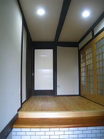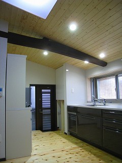 リフォームのお話(FJ邸) 2010年8月14日2014年12月18日 by 福川工務店 ご近所でのリフォーム工事です。 玄関から風呂・便所・台所と水廻りの改修です。 日当たりがあまりよくないので天窓を、天井が低いので梁を見せ勾配天井にしています。桧の床材・塗り壁などで仕上げています。玄関の欅の下段板は再利用しました。