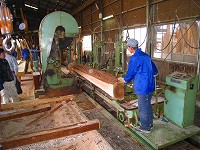 湖東地域材循環システム協議会(kikito)で「材の規格化と性能評価」の取組みをしていますが、淡海里の家事業協同組合(風土木の家)が実務をお手伝いさせていただいております。風土木のセミナーとあわせ、実験体になる木が入ってきた長谷川林材さんで製材の現場を見せていただきました。