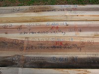 県立大に運ばれた60本の試験体の木を1本ずつ寸法・重量・比重・JASによる目視評価・芯5cmの年輪数を測り、ハンマーでの打撃式と曲げ試験機によりヤング係数を調べました。